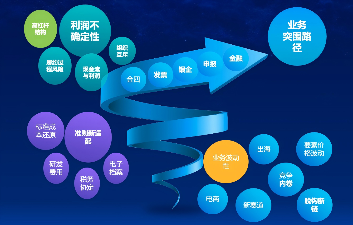 如果把企业比作一辆车,在稳态的高速发展市场上,就像行驶在8车道或12车道的高速上,只需踩油门保持时速120公里就能顺利前行;但是事实是很少有这样宽敞的道路,客户需求不断变化,对手竞争激烈,产品种类愈加繁多,所面临的要素价格也持续波动,这些因素共同构成了充满“起伏”甚至急“弯”的道路。若缺乏新的技术手段,就如同在这样的起伏路况中行驶却没有亮起的路灯,企业却仍不得不向前行进。这个时候盲目加速到120公里是不现实的。由于缺乏审慎态度且无法准确评估订单,在固定成本(包含刚性人工成本)占比高的结构下,多少企业因此折戟沉沙。不论国内还是国外,新的外部财税环境正类似于我们身边的“天眼”与“交警”,提醒我们必须系好“安全带”。在这样的形势下,我们唯有主动改变自己。